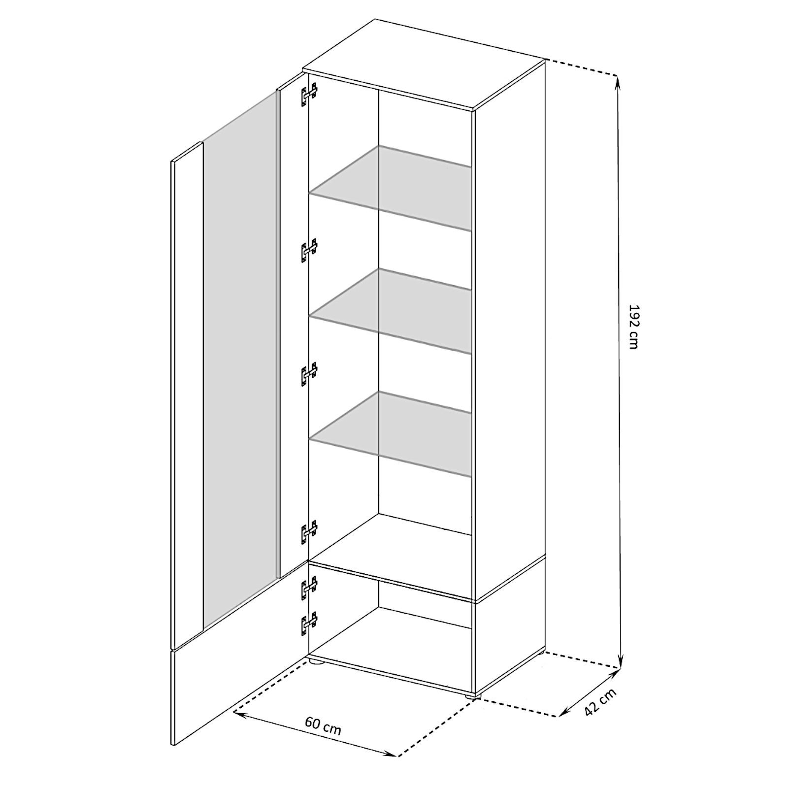• Freestanding cabinet: Width: 60 cm, Height: 192 cm, Depth: 42 cm