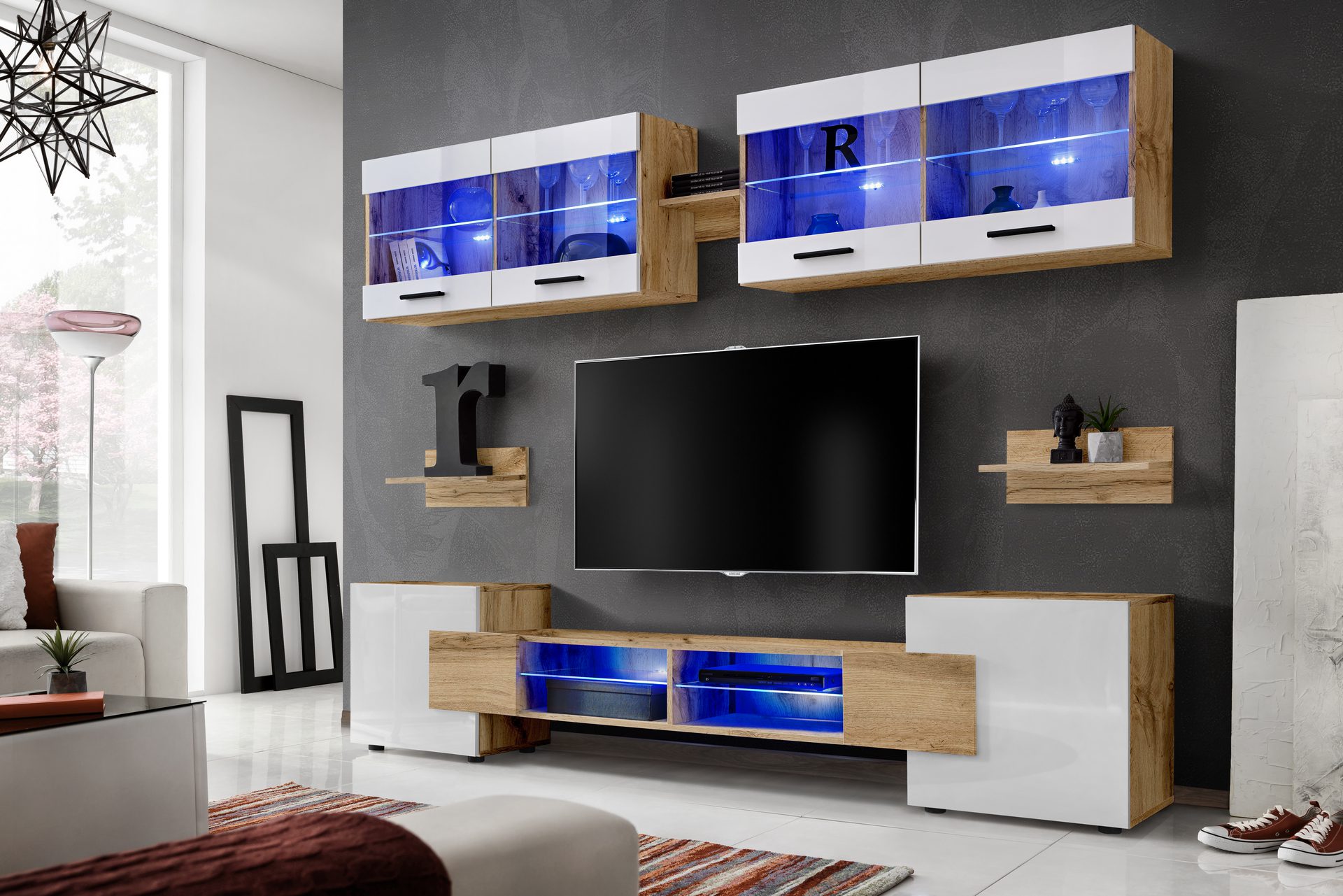 Foggia TV Furniture Set, White/Wotan LED Lighting Blue