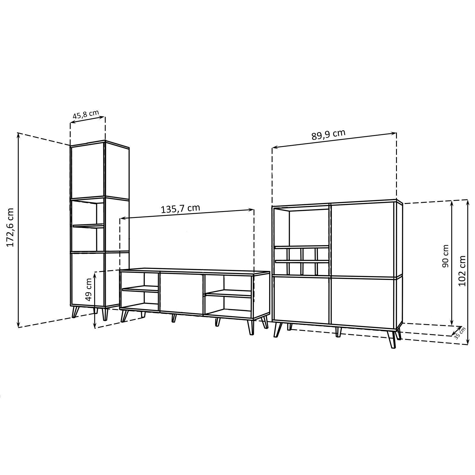 1 TV cabinet: width 135.7 cm, height 49 cm, depth 35 cm