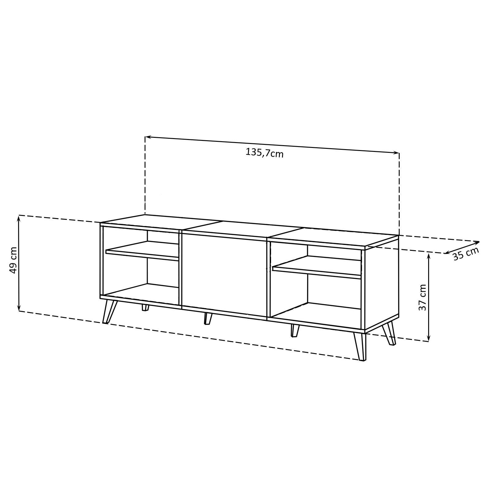 1 TV cabinet: width 135.7 cm, height 49 cm, depth 35 cm