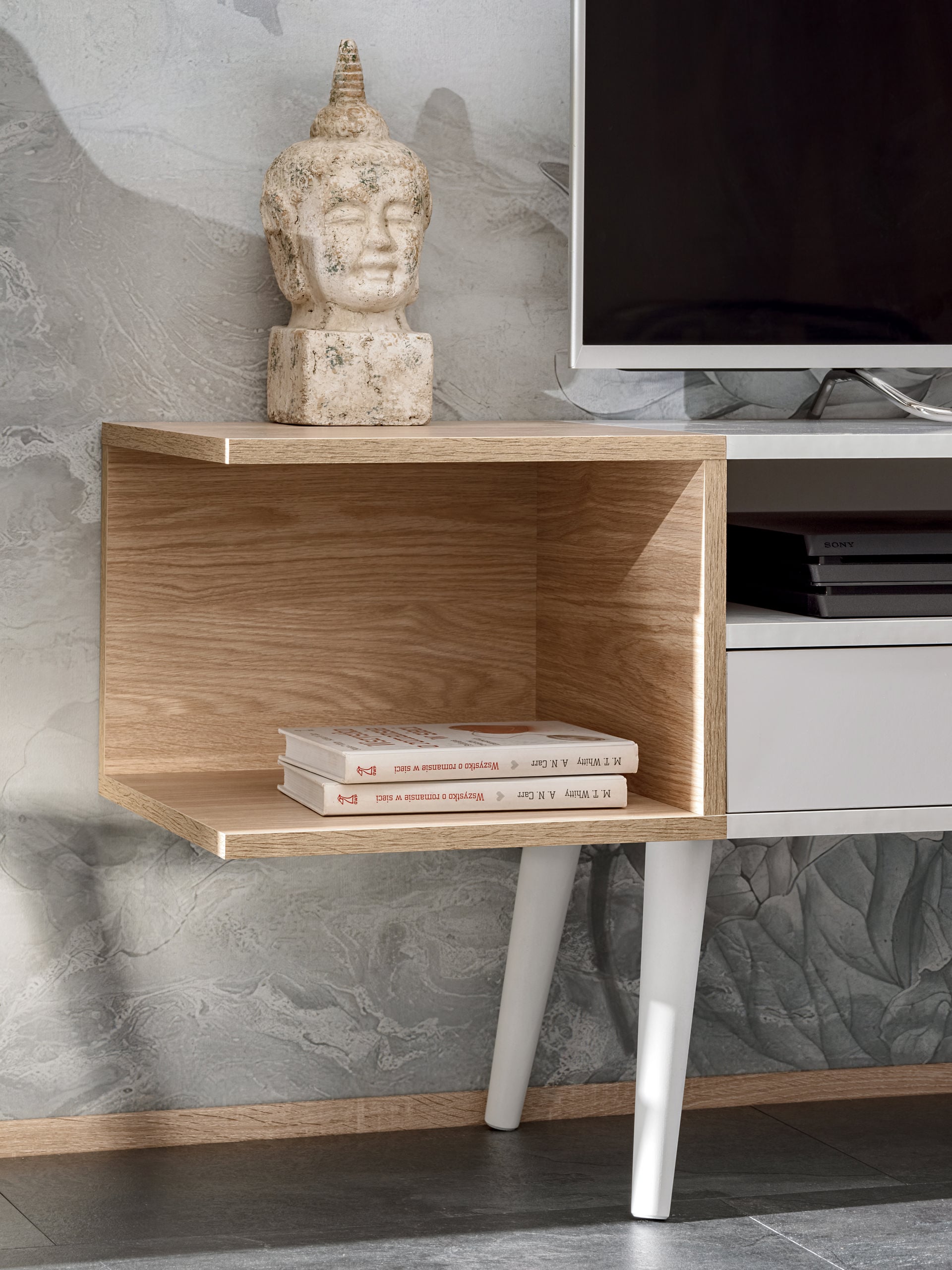 The Forio TV cabinet combines modern minimalism with timeless functionality. It is perfect not only as a stand for your TV, but also as a storage solution for audio equipment, game consoles, and other essential accessories. The cabinet allows for convenient organization of cables and devices.