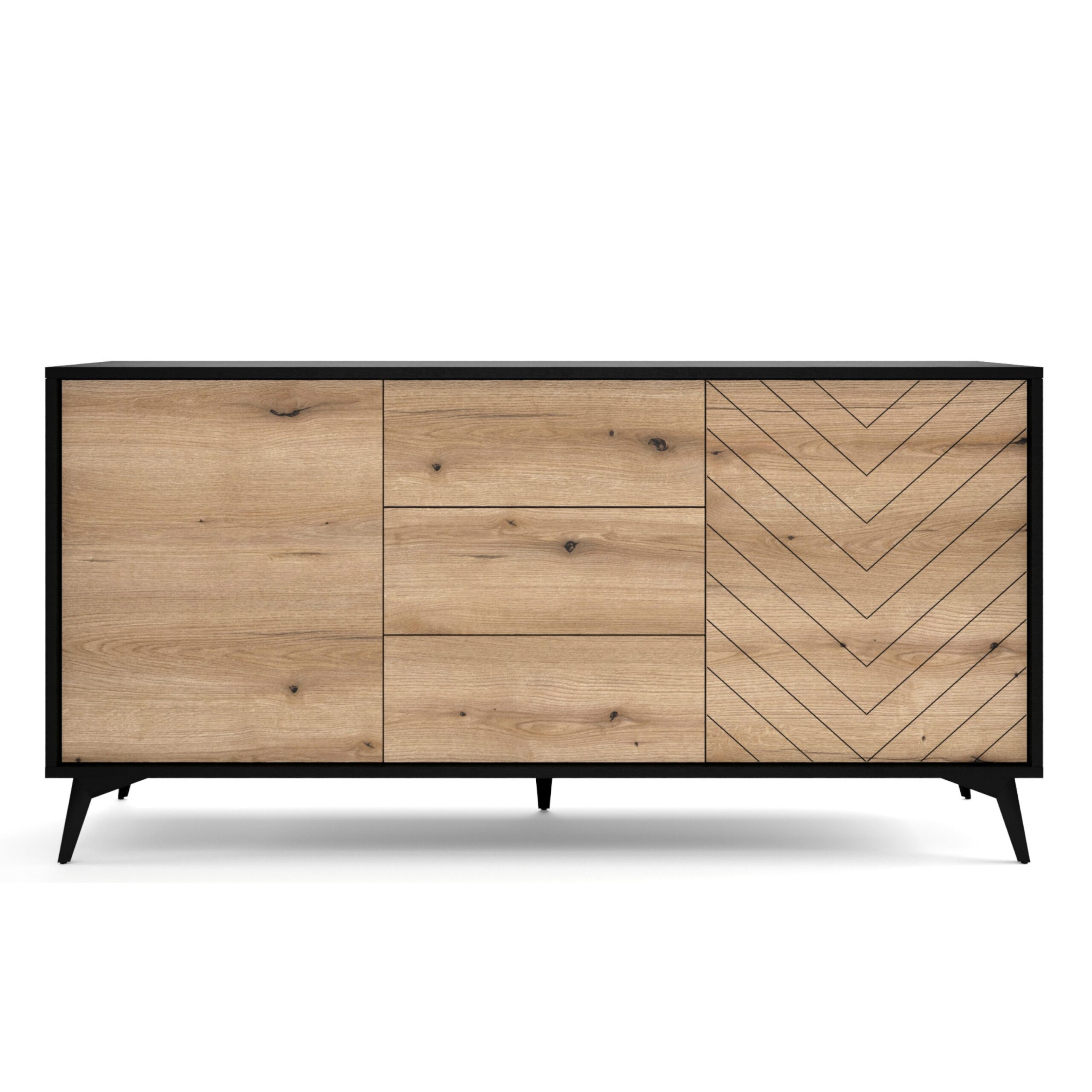 Jasper KSZ154 – chest of drawers, evoke oak, black, width 154 cm, height 77 cm, depth 39 cm