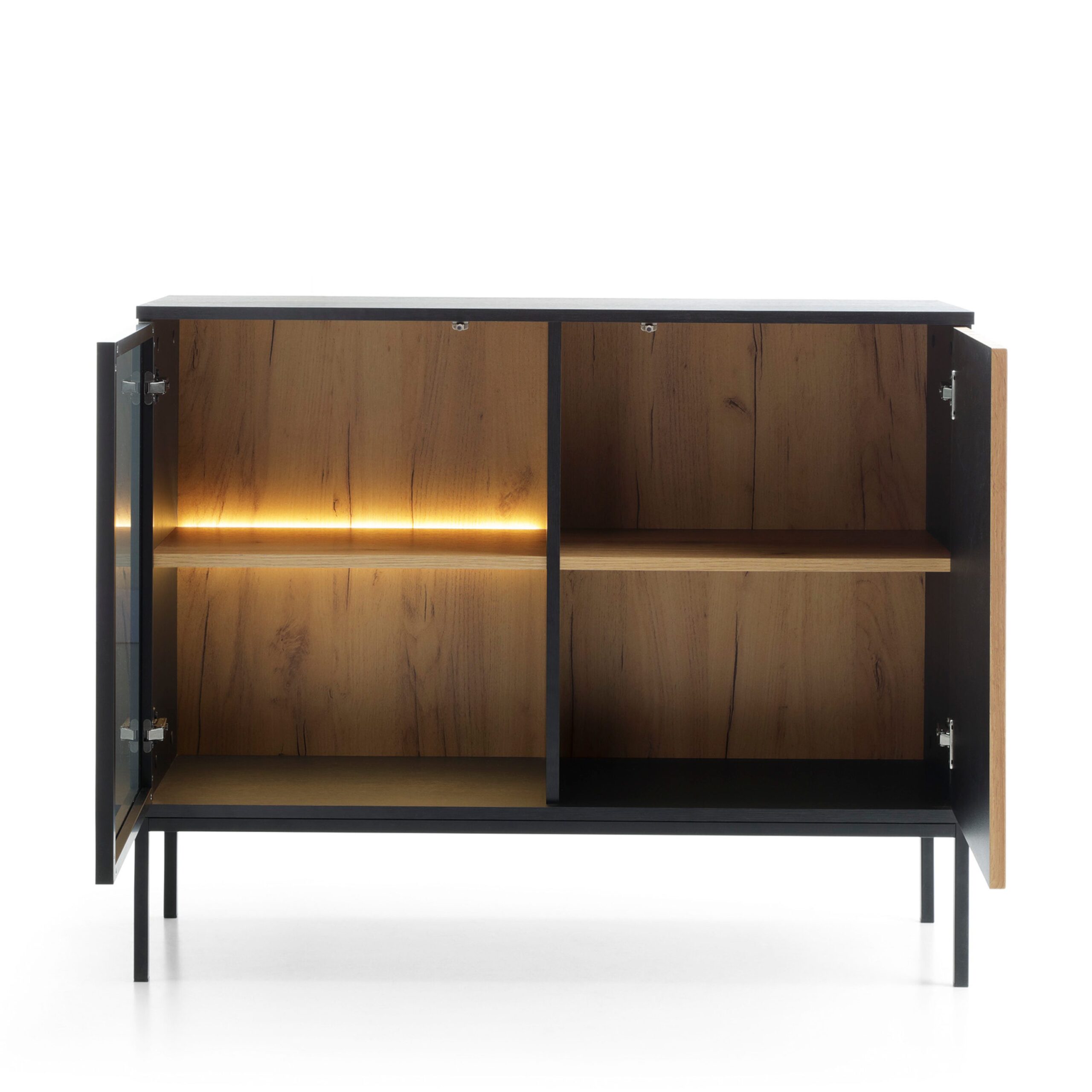 Laval K104 LED – three-door chest of drawers with lighting, black, wotan oak, width 104 cm, height 83 cm, depth 39 cm
