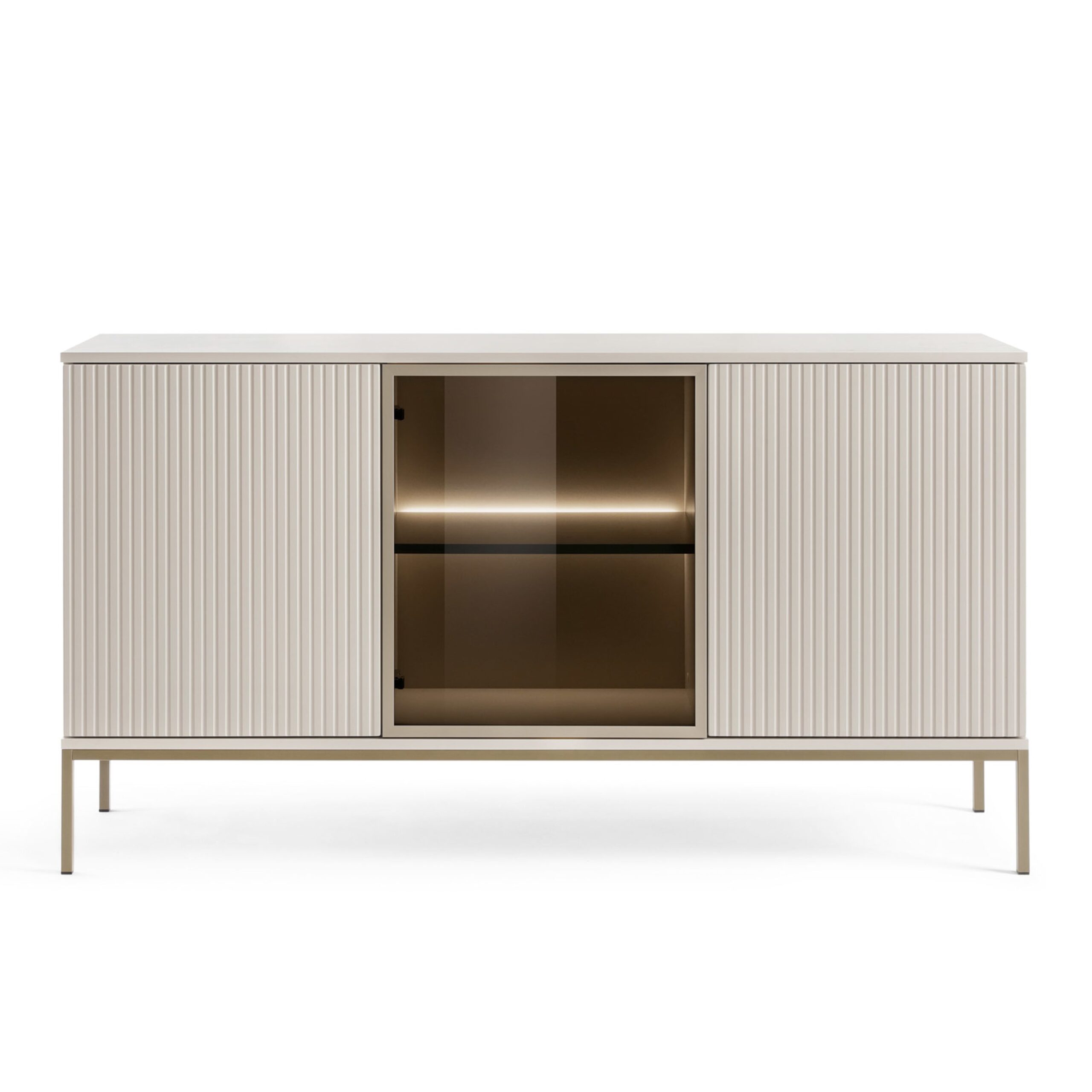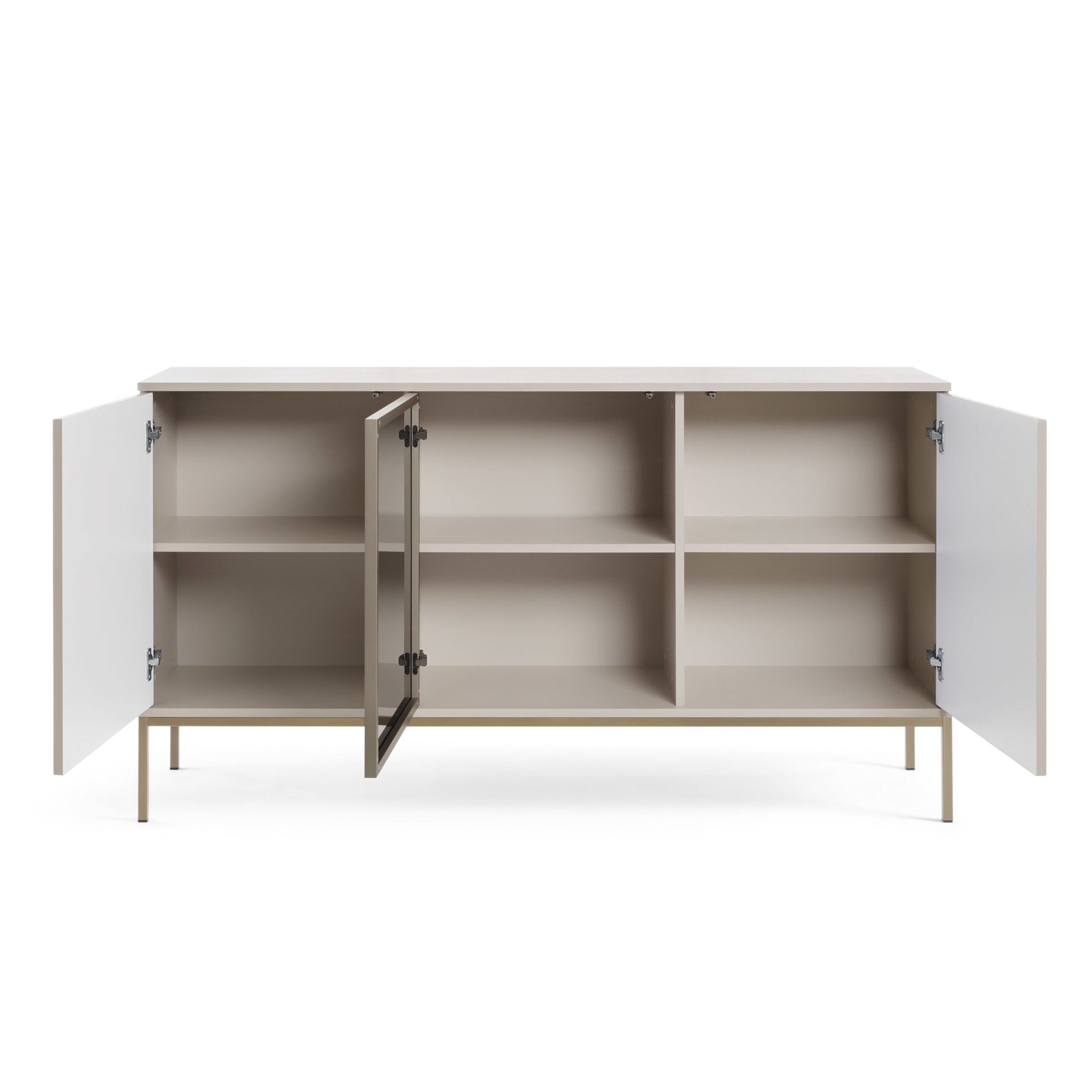 The Laval K154 chest of drawers is a piece of furniture created for modern and loft interiors. Its capacious cashmere-coloured design has been complemented by decorative slats on the front, which gives the whole an elegant character. The three-door layout with a push-to-open system allows for comfortable and aesthetic use without visible handles. The interior of the chest of drawers hides numerous shelves that can accommodate documents, tableware or home textiles. It is a functional and stylish solution for the living room, dining room or hallway.