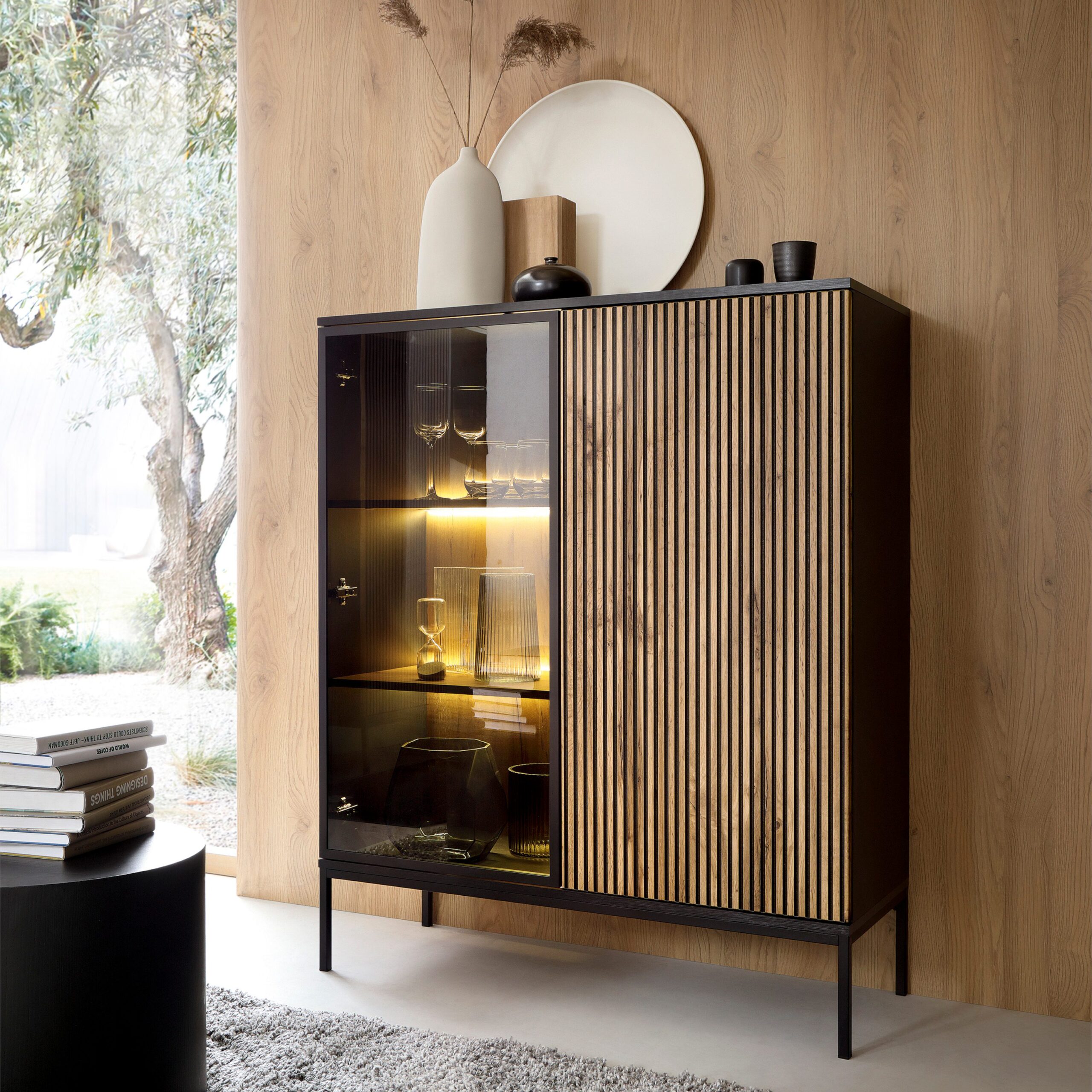 Laval WT104 – LED Lighting Cabinet, Wotan Oak, Black, Width 104 cm, Height 126 cm, Depth 39 cm