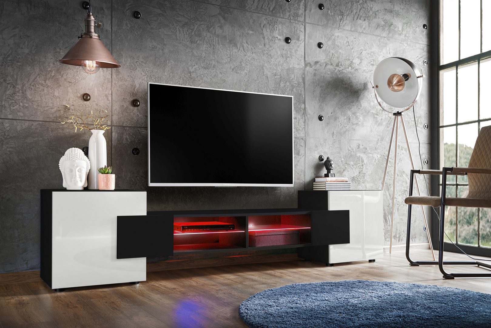Merano TV Cabinet, Black/White RGB LED Lighting
