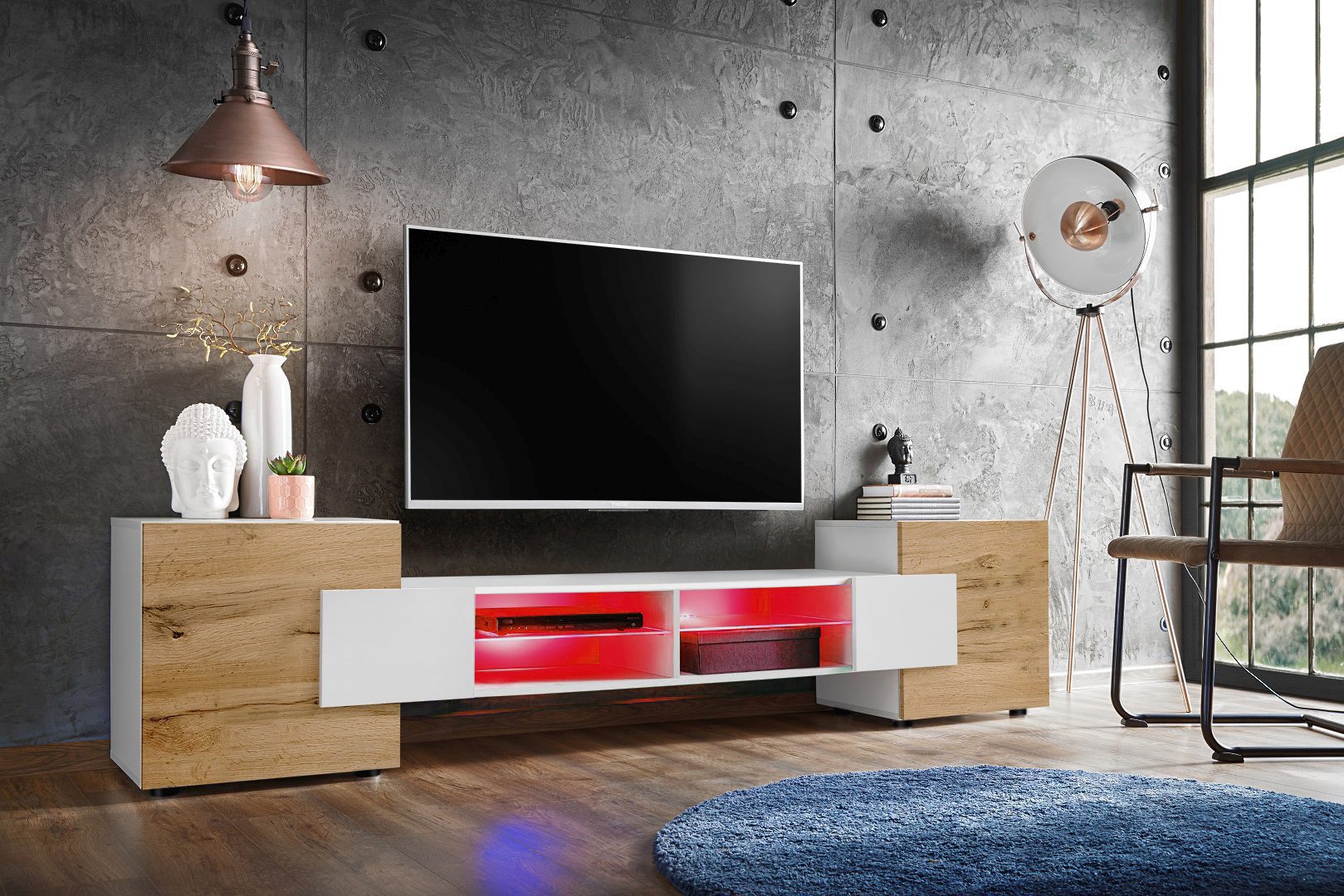 Merano TV Cabinet, White/Wotan RGB LED Lighting