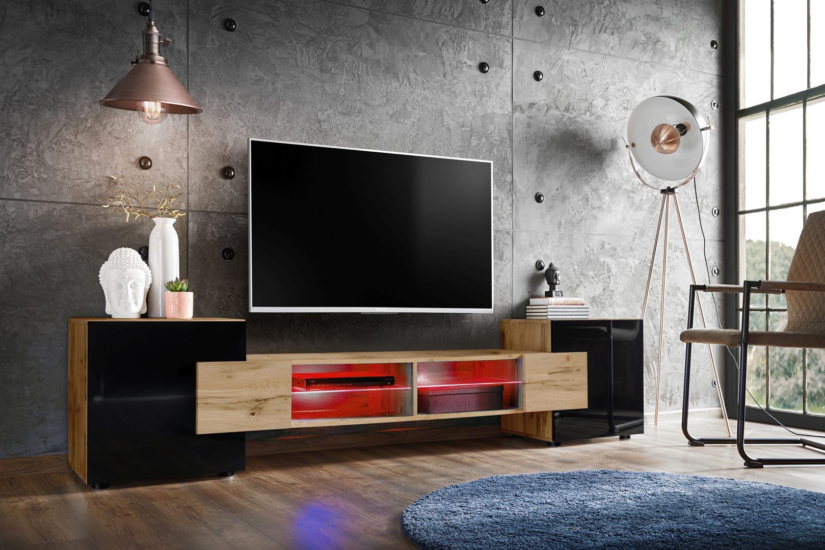 Merano TV Cabinet, Wotan/Black RGB LED Lighting