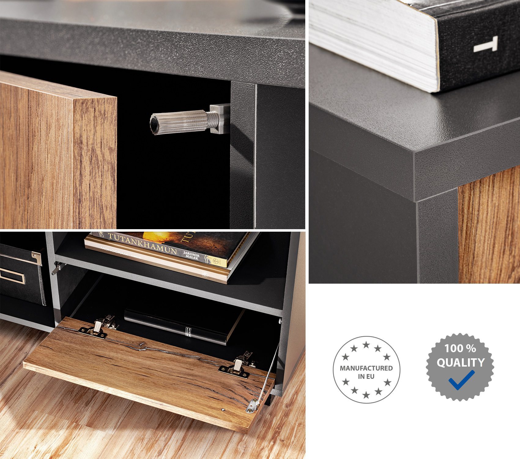 The Orvieto coffee table embodies the Komodee brand. Its original design combines elegance with functionality. Timeless and harmonious shapes complement the wood-inspired facade and anthracite body. Orvieto blends beautifully with classic interiors, as well as minimalist and industrial arrangements.