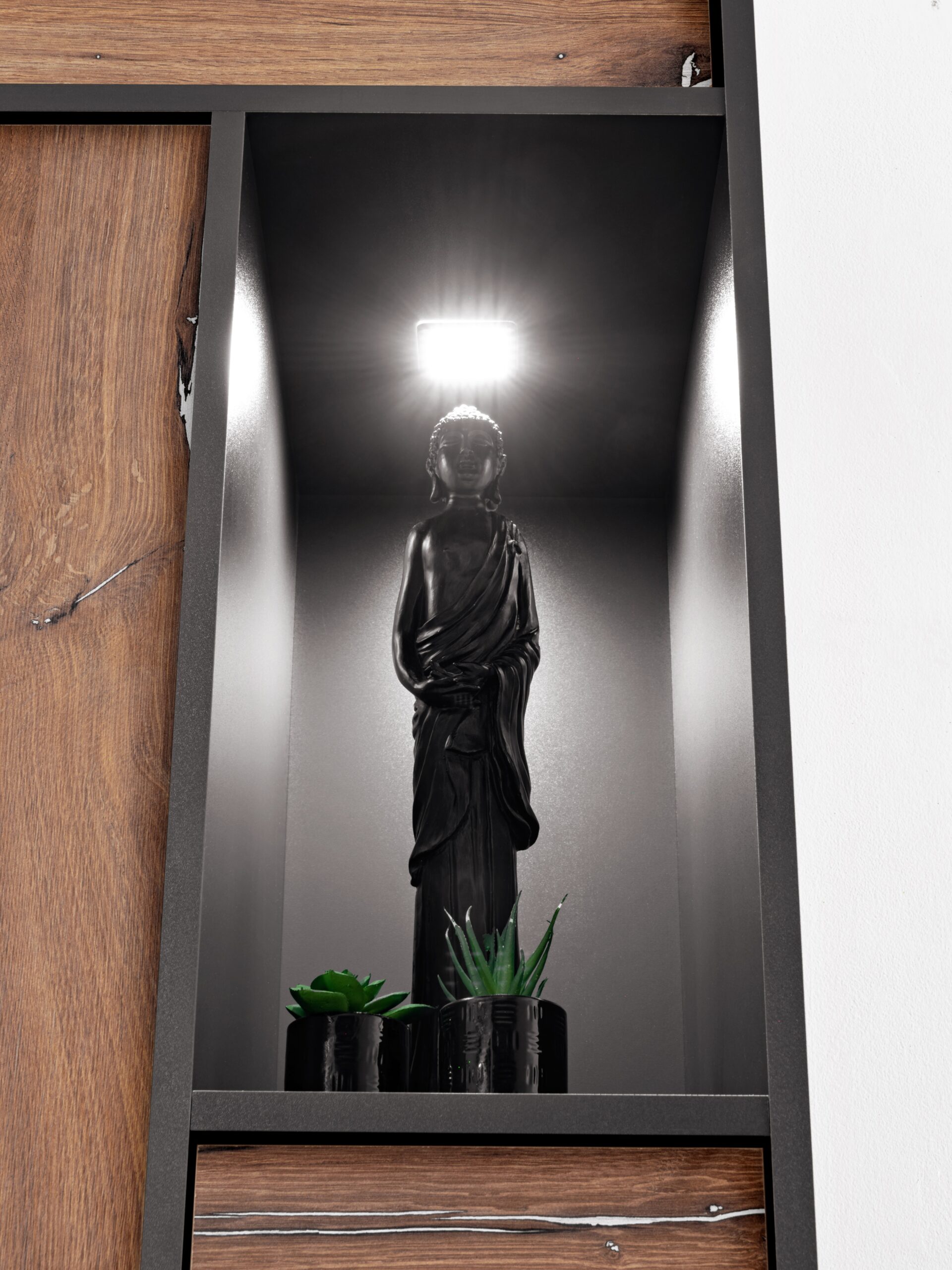 The Orvieto furniture collection embodies the Komodee brand. Its original design matches functionality. Timeless and harmonious shapes complement wood-inspired finishes and the jewel tone of anthracite. Orvieto blends perfectly not only with classic interiors but also with minimalist and industrial styles. The ORVIETO collection helps bring order to your living room. It can hold books, souvenirs, documents, art objects, as well as porcelain and audiovisual materials. Each piece from the Orvieto collection is also available separately.