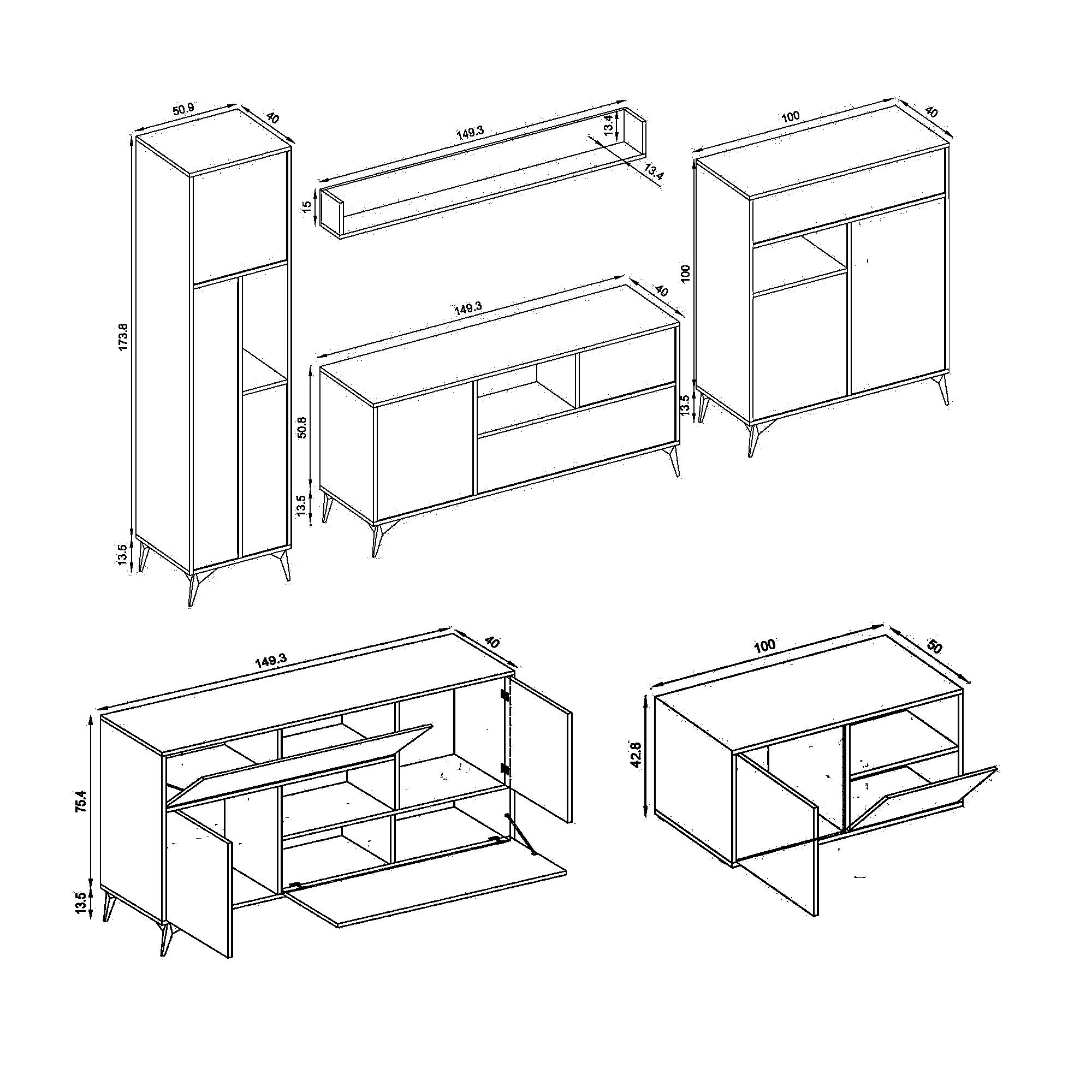 1 shelf – Width: 149.3 cm, Height: 15 cm, Depth: 13.4 cm.