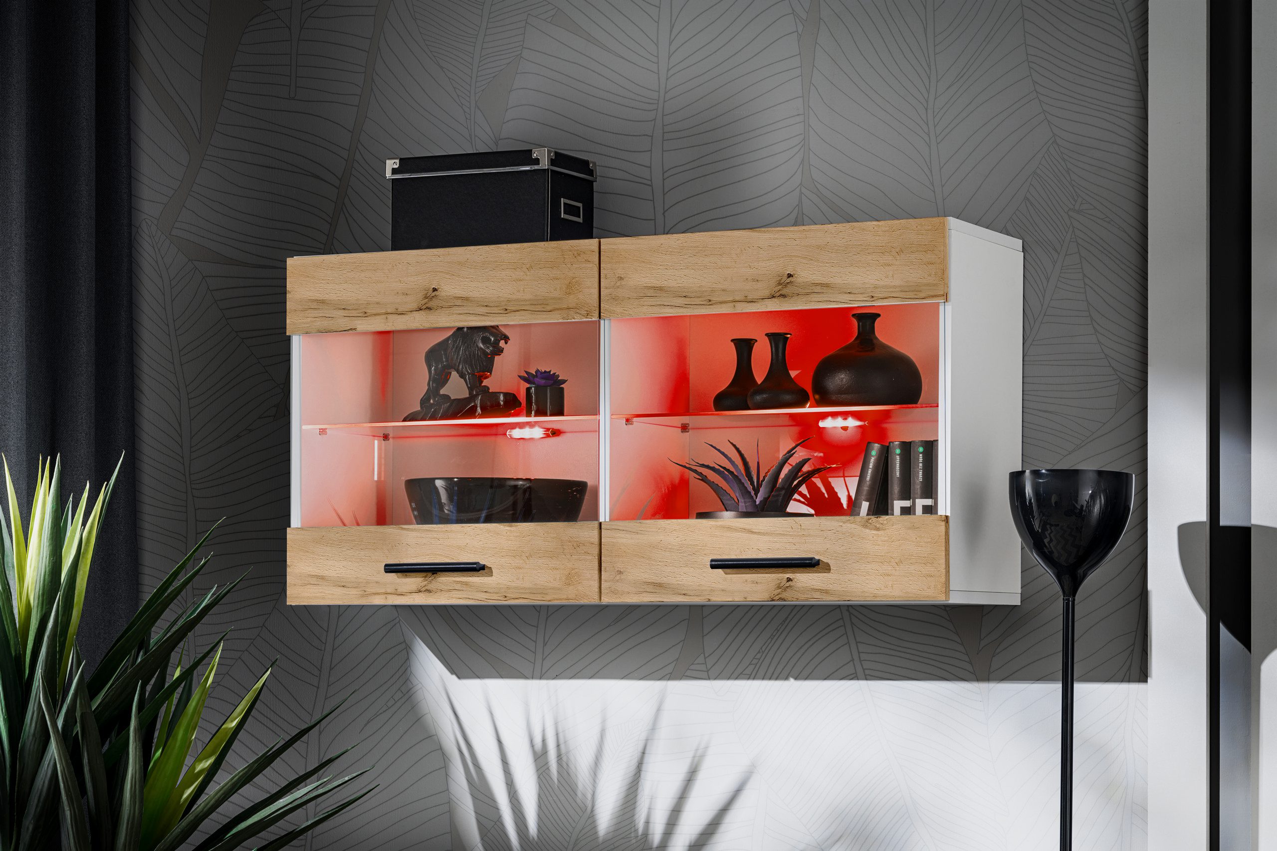 Savona Hanging Shelf Cabinet, Wotan/White RGB LED Lighting