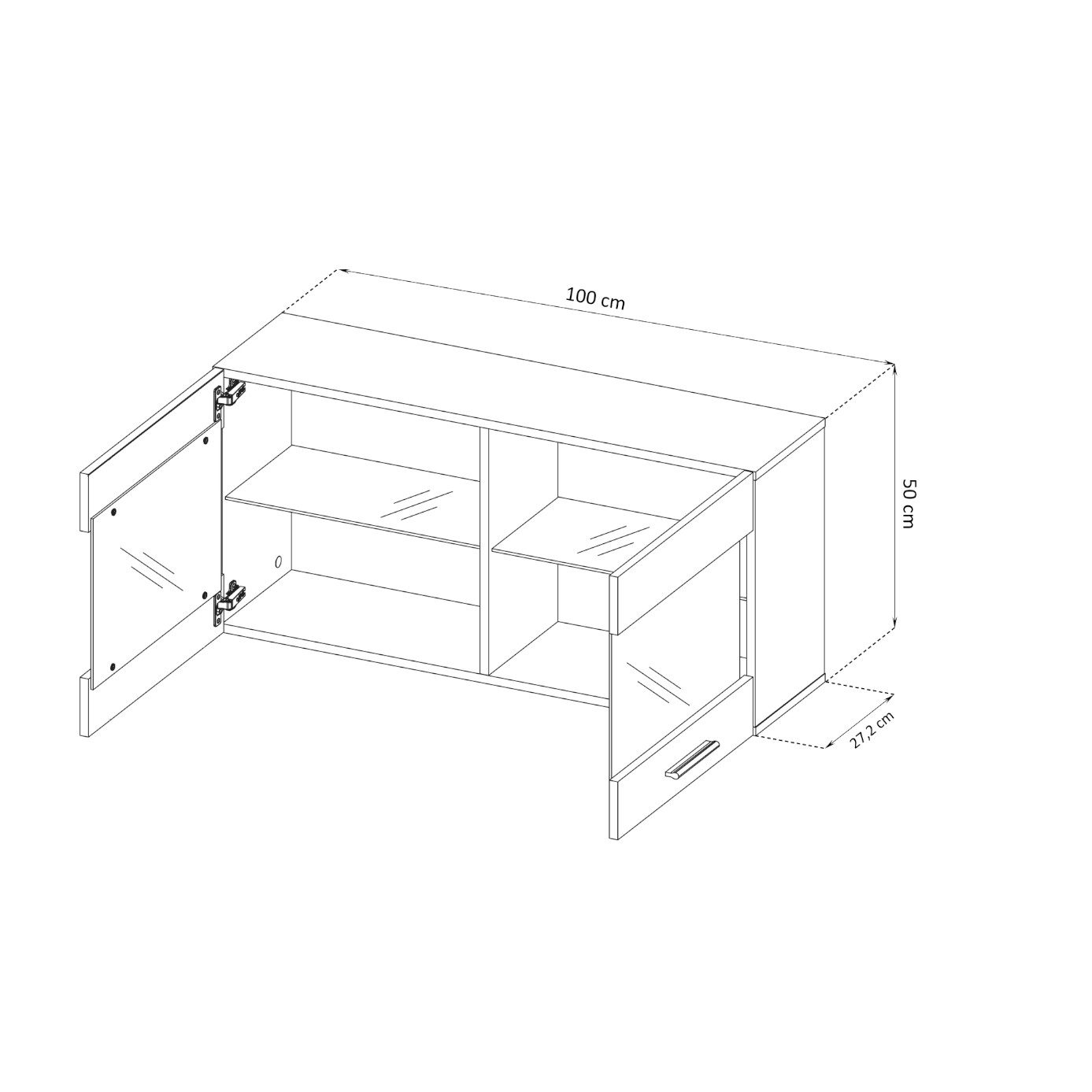• 1 x Wall-mounted cabinet, height: 50 cm, width: 100 cm, depth: 30 cm