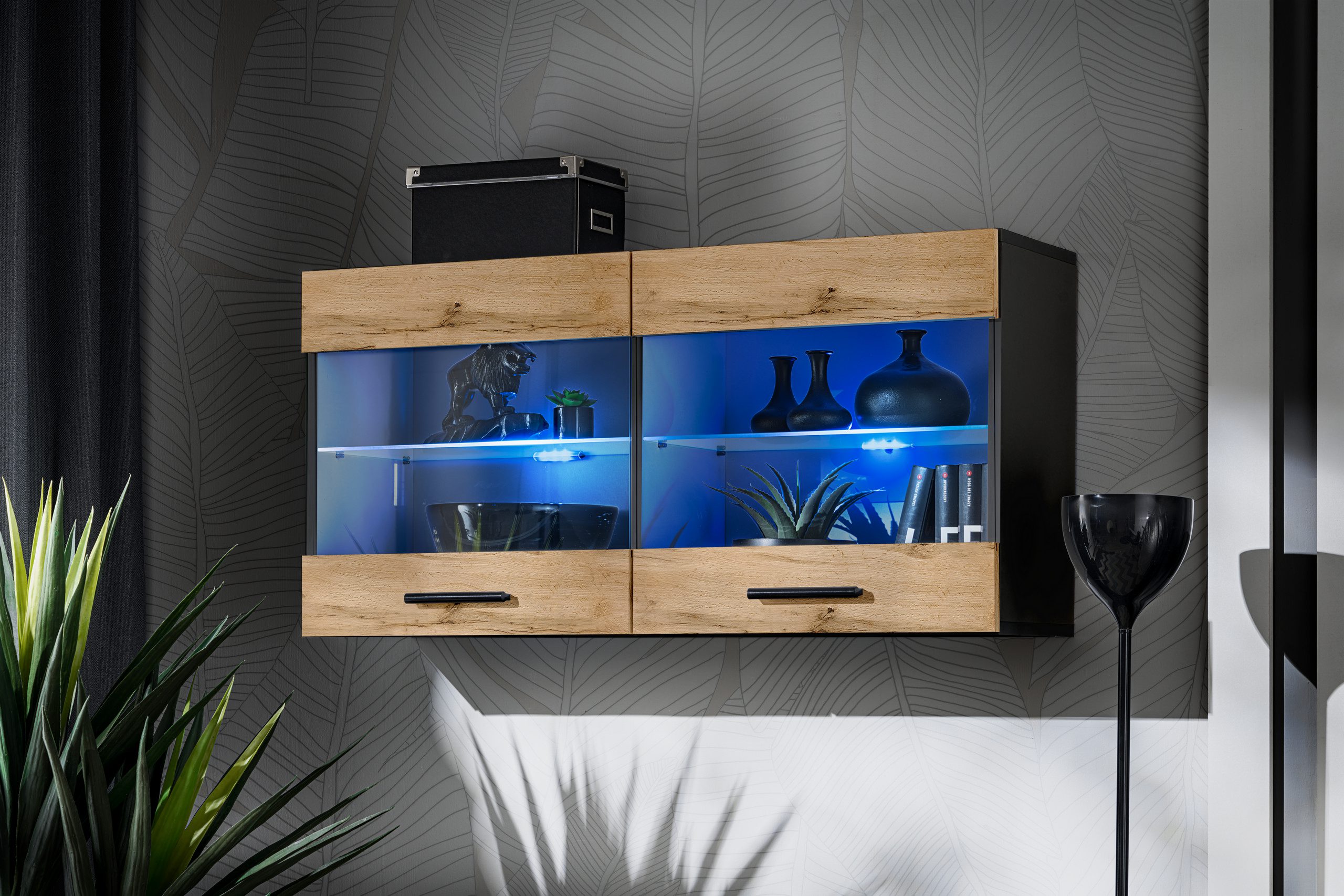 Savona Hanging Shelf Glass-Door Cabinet, Wotan/Black