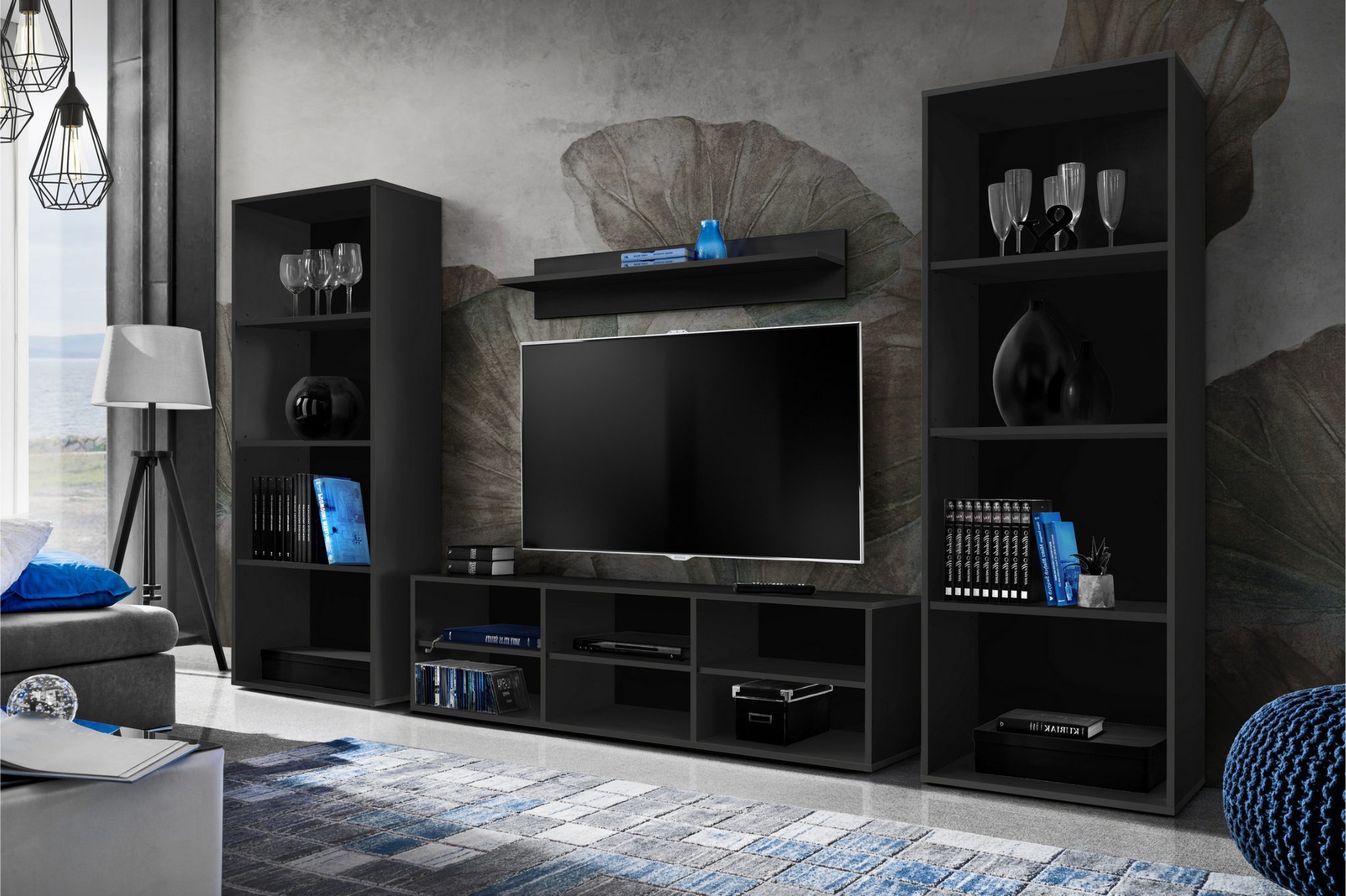 The Taranto Grande TV wall unit combines design with functionality. It offers elegant space for your TV equipment as well as storage for discs, books, porcelain, souvenirs, or documents. Each element can be arranged freely, which means TARANTO GRANDE can be conveniently adapted to apartments of various sizes.