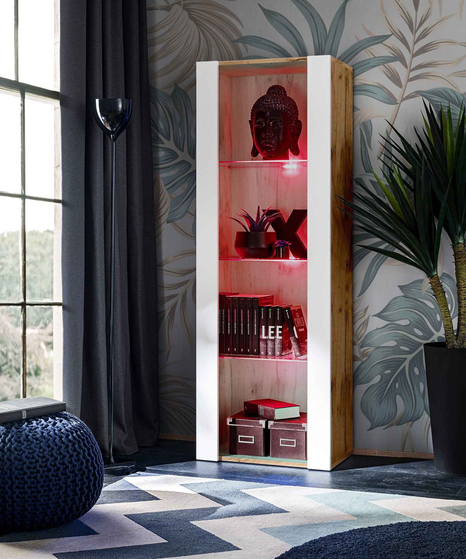 Tivoli Glass‑Shelf Cabinet, White/Wotan RGB LED Lighting