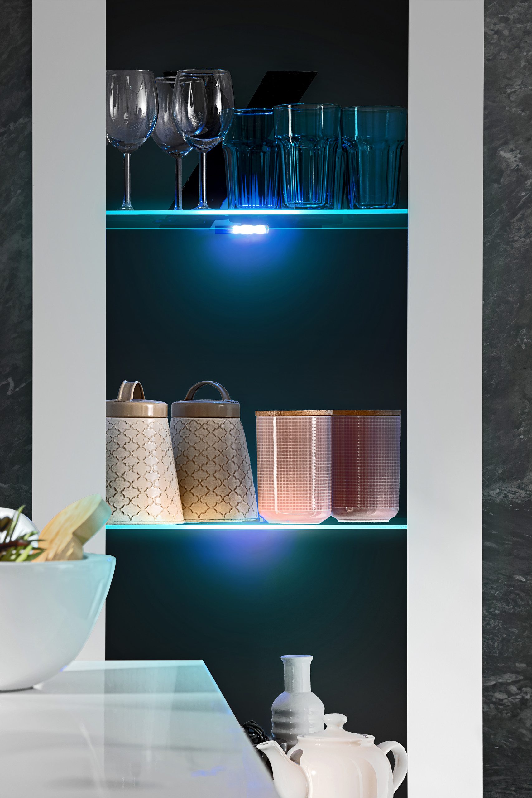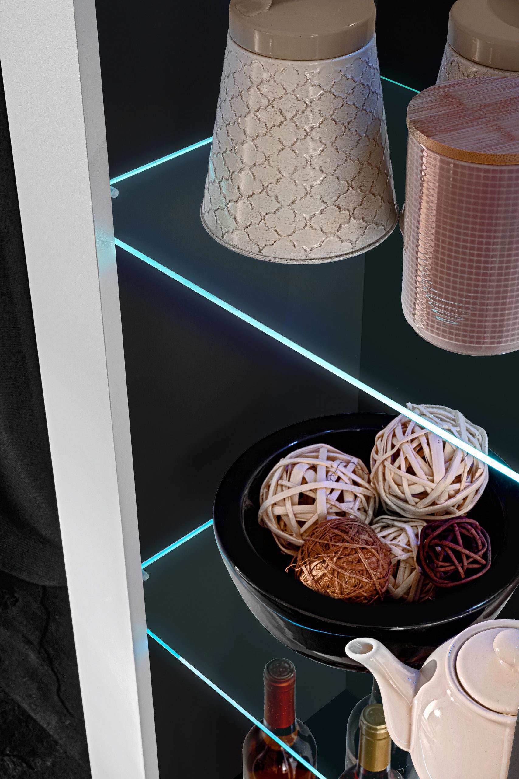 Tivoli Glass-Shelf Cabinet, White/Black LED Lighting Blue