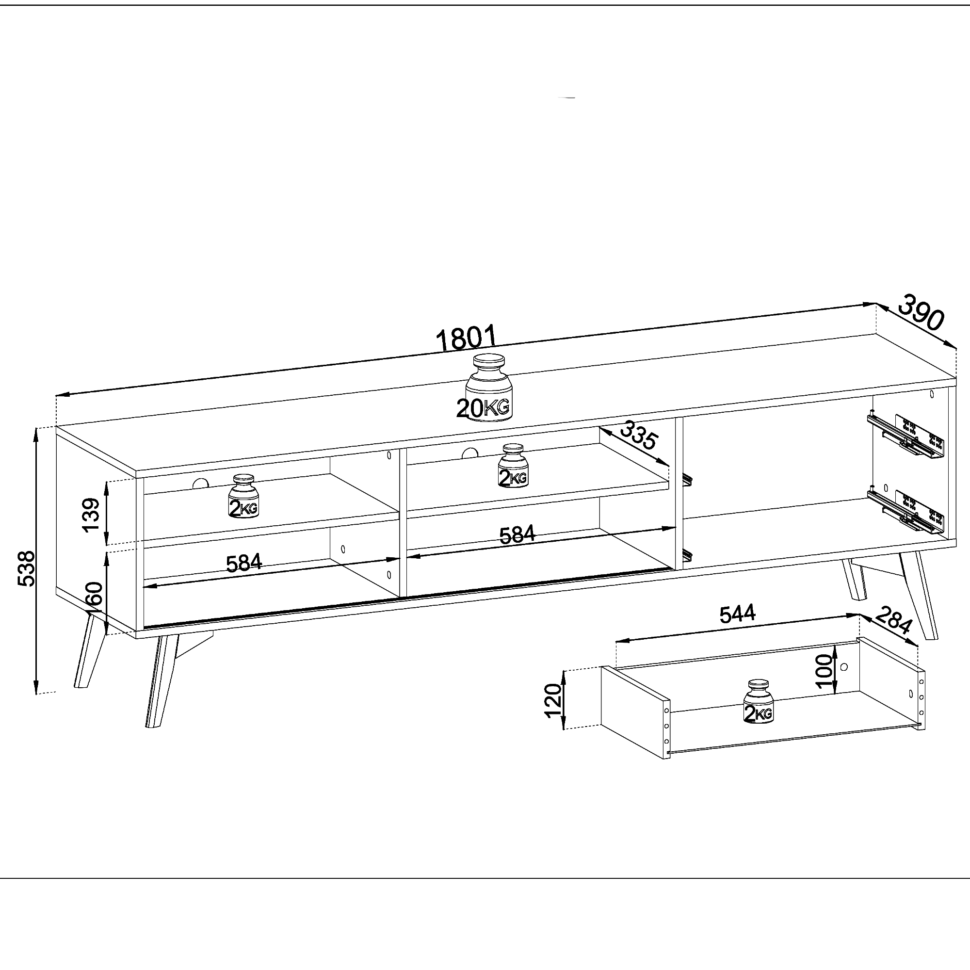 Dimensions 39 × 180 × 54 cm