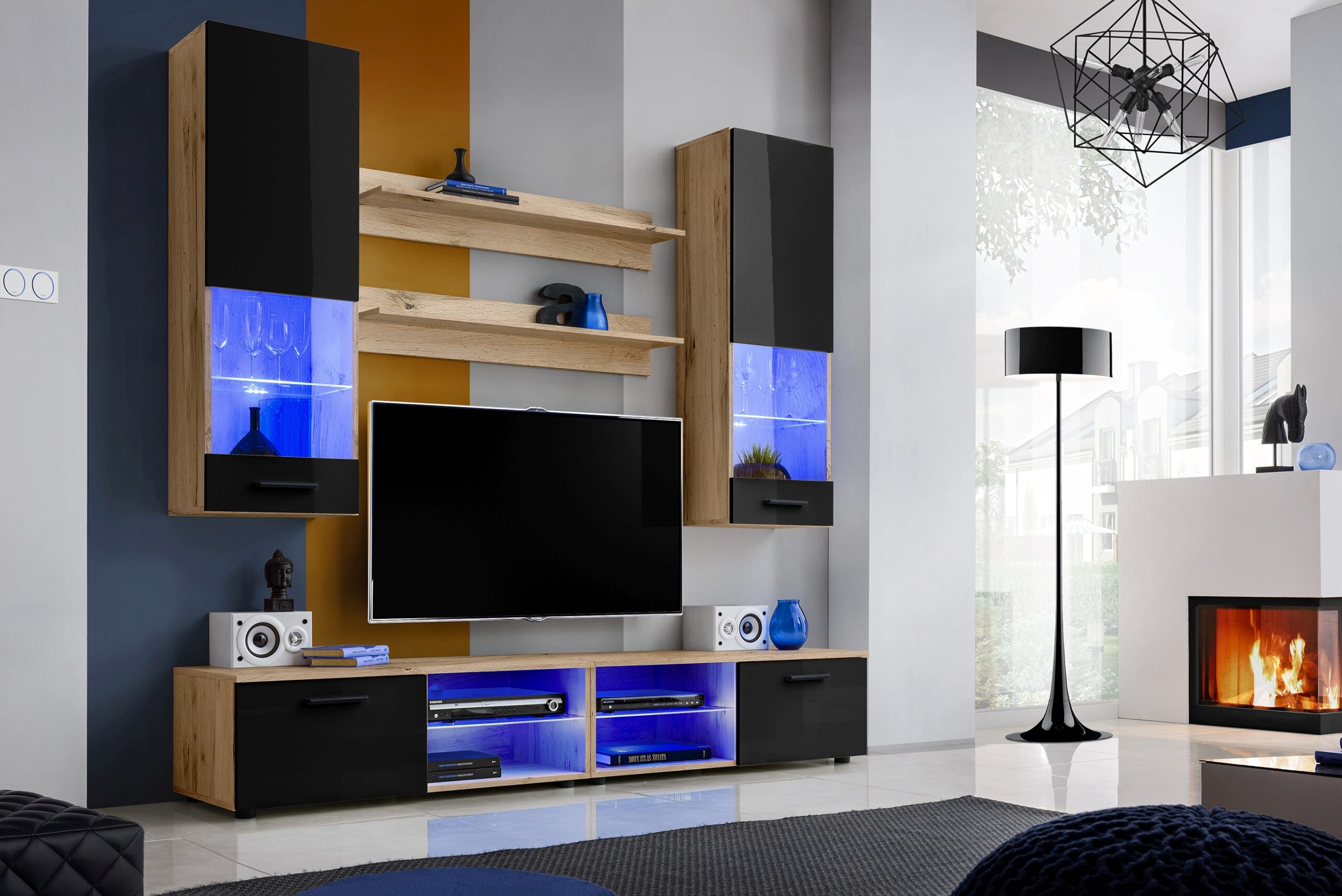 • If you choose blue or RGB LED lighting, you’ll receive lighting for the TV cabinet and both wall cabinets
